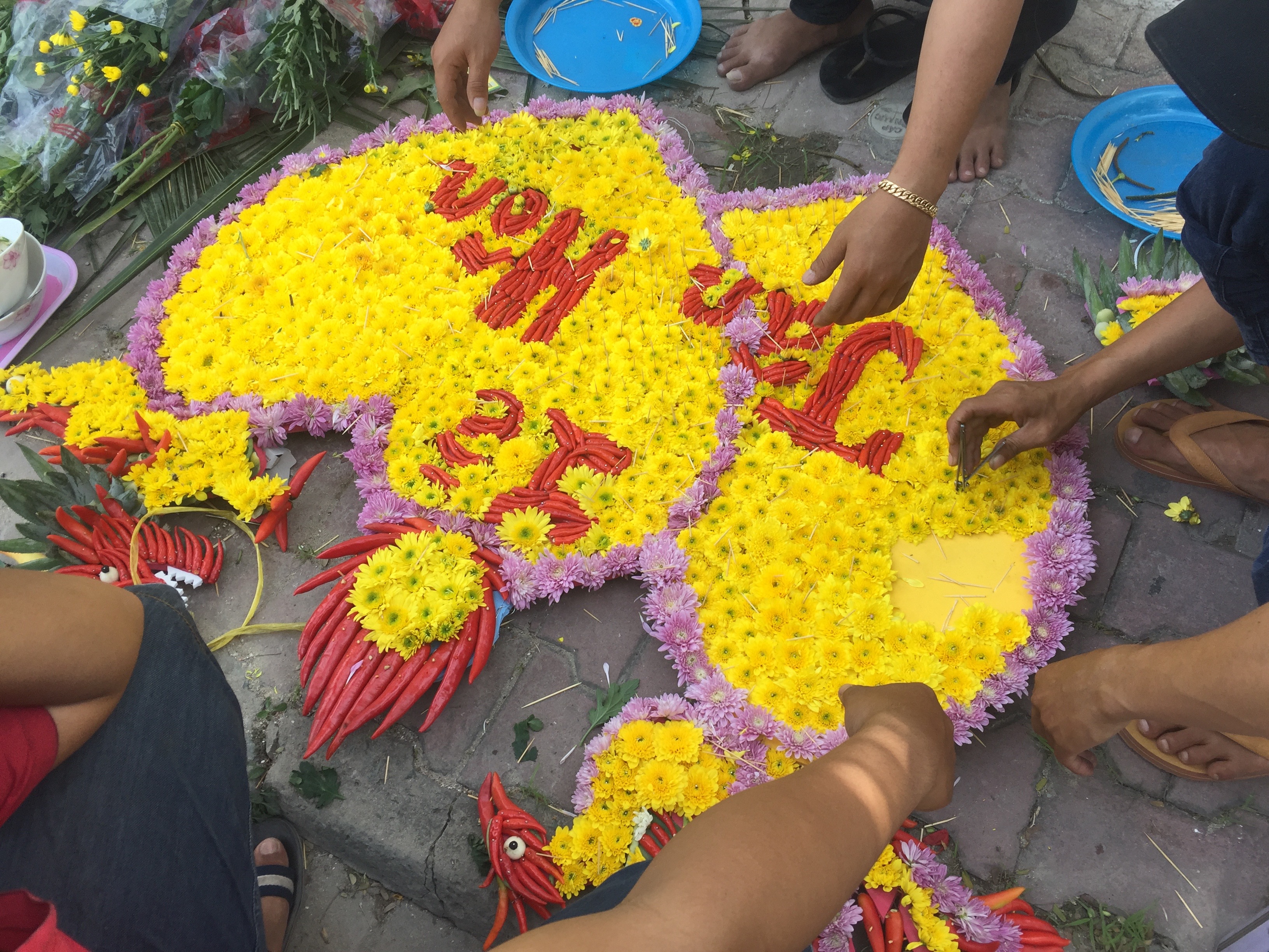 Phải mất nhiều giờ để thi công cổng hoa này.