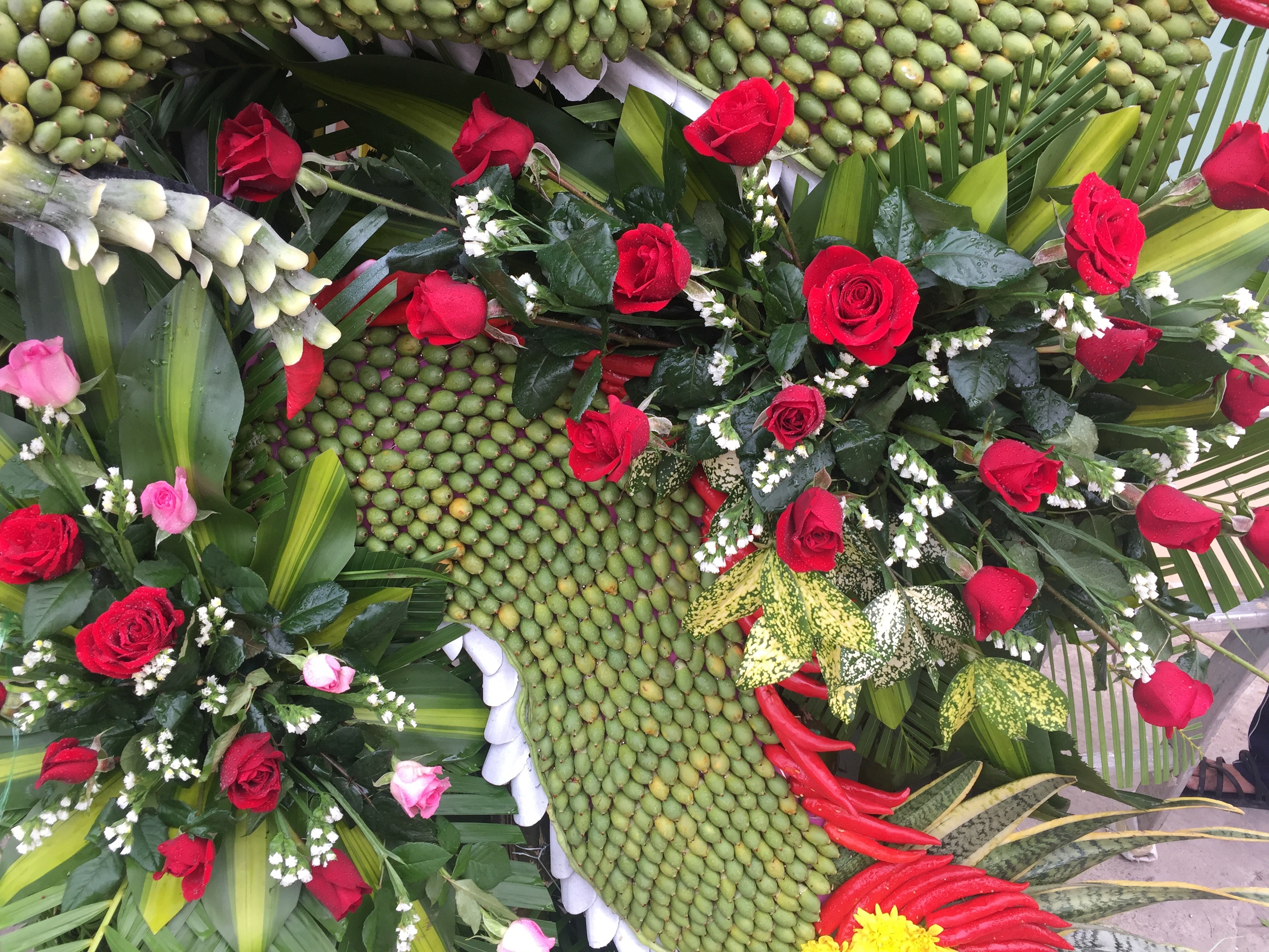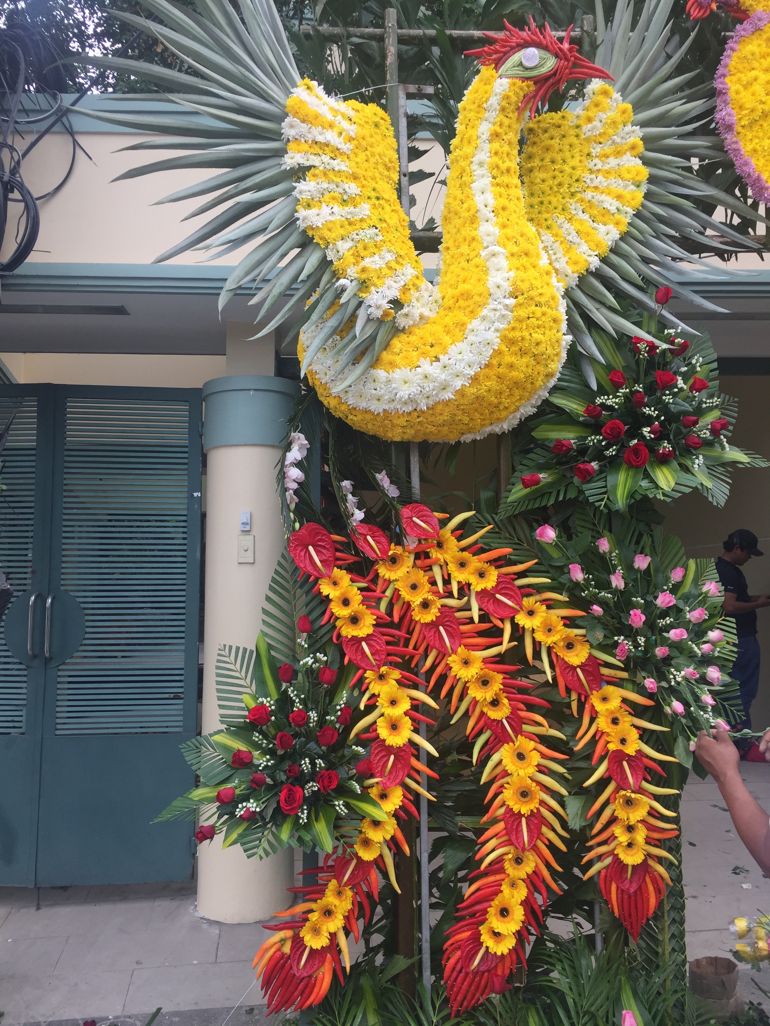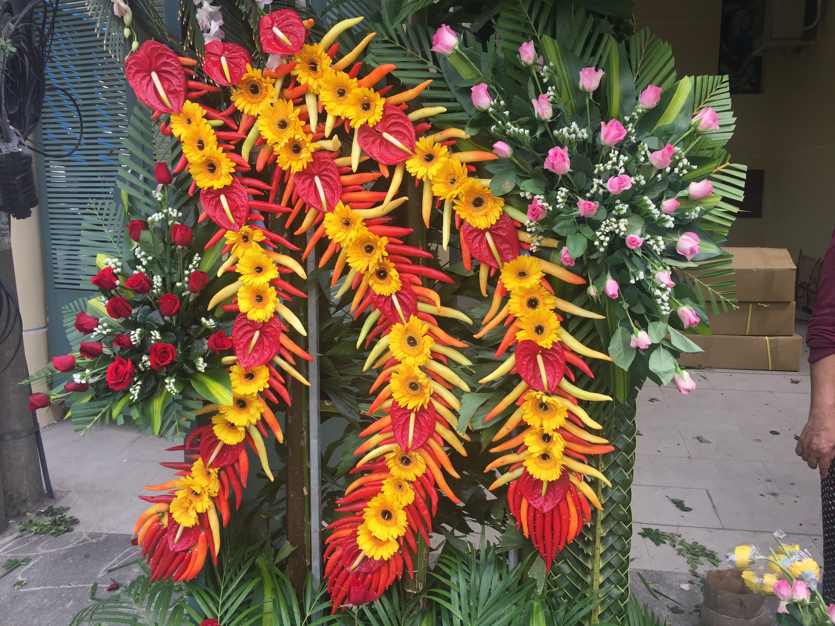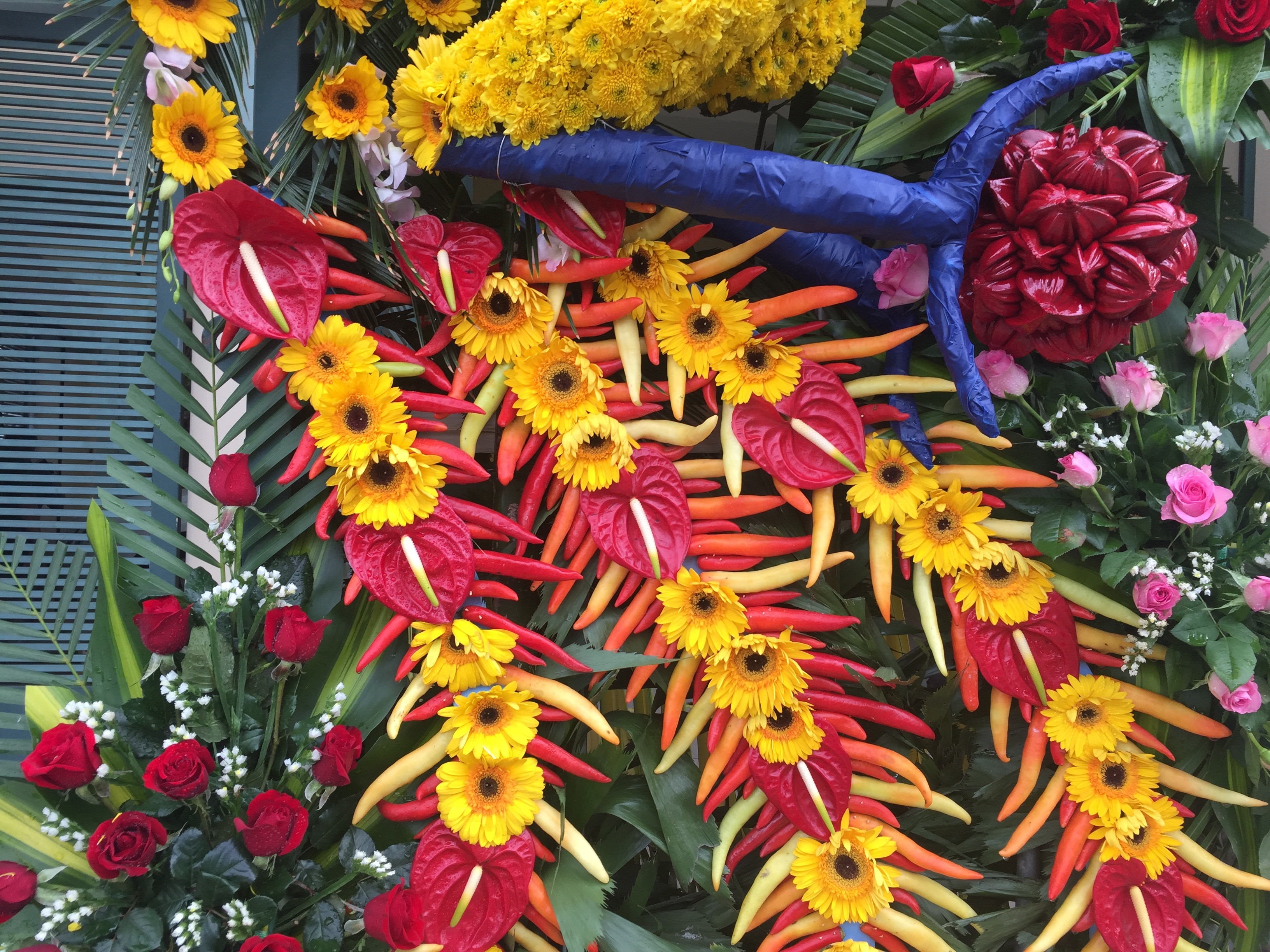 Đuôi phụng làm bằng hoa cúc, hồng môn và ớt.