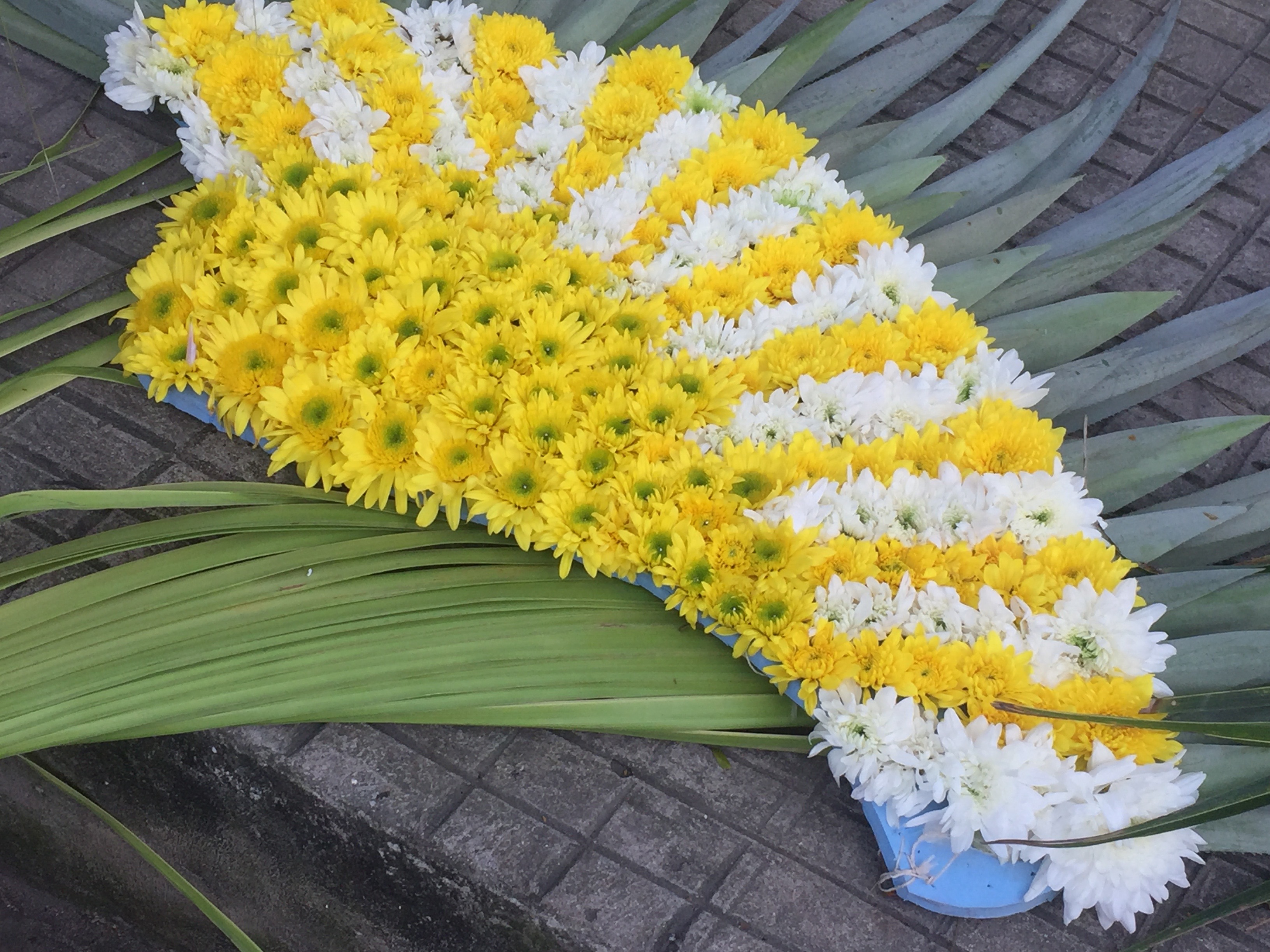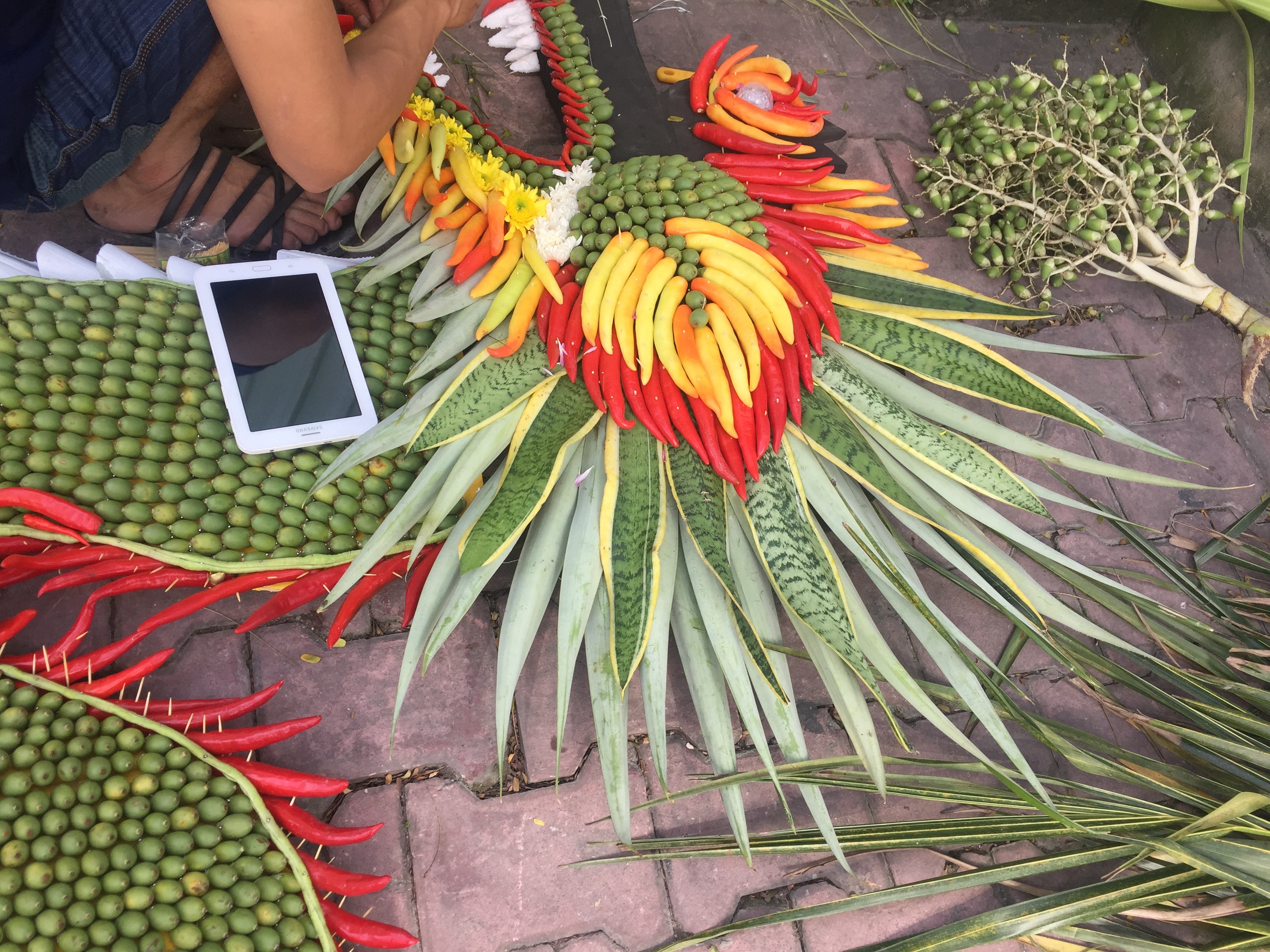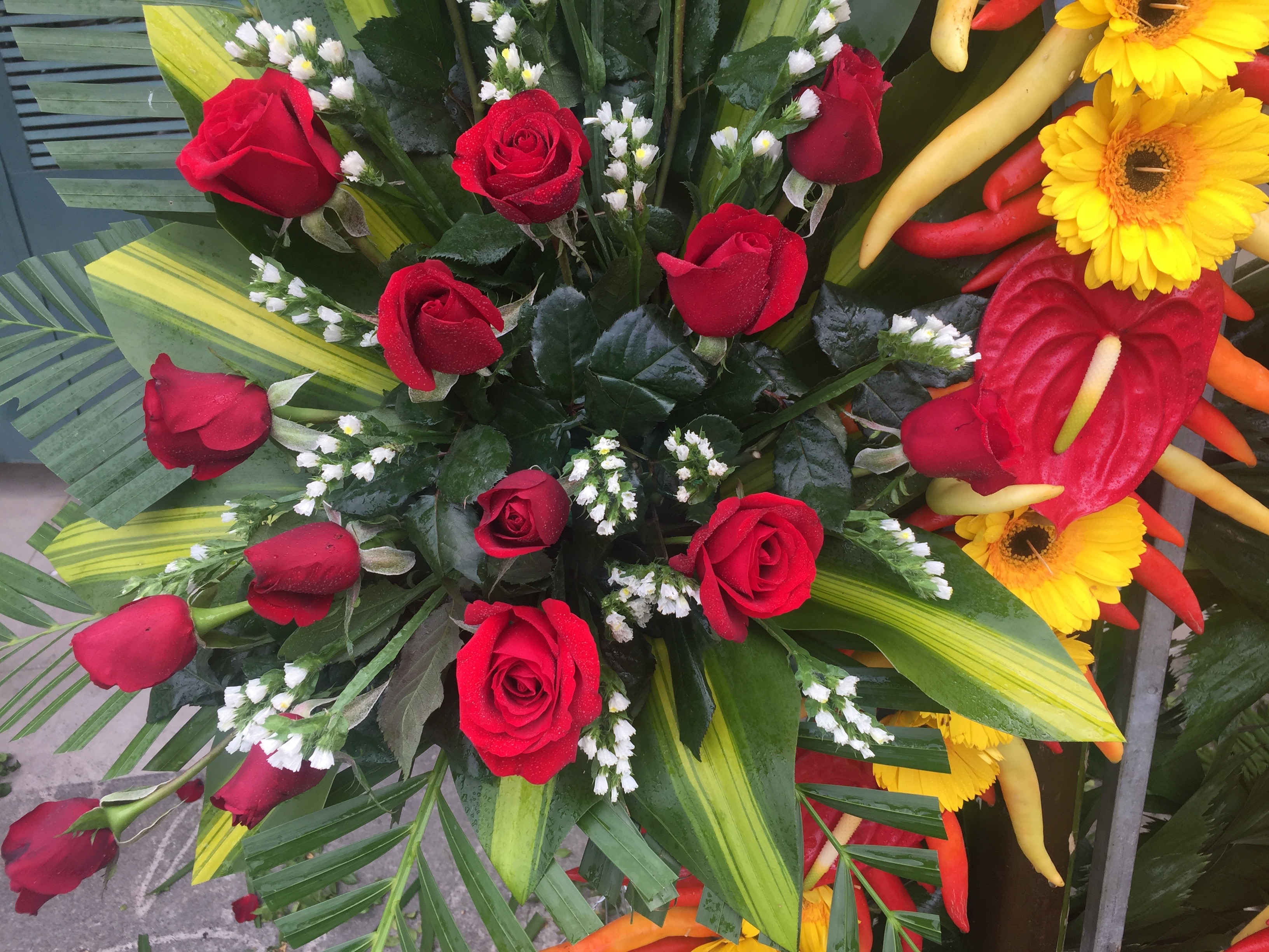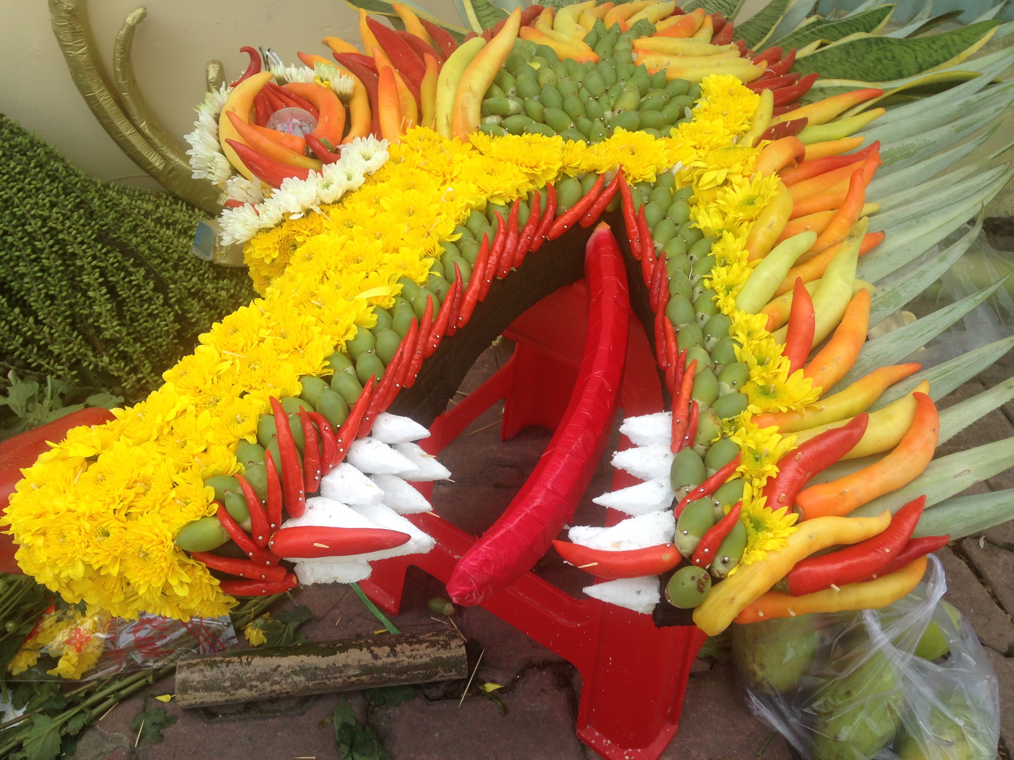 Đuôi phụng làm bằng hoa cúc, hồng môn và ớt.