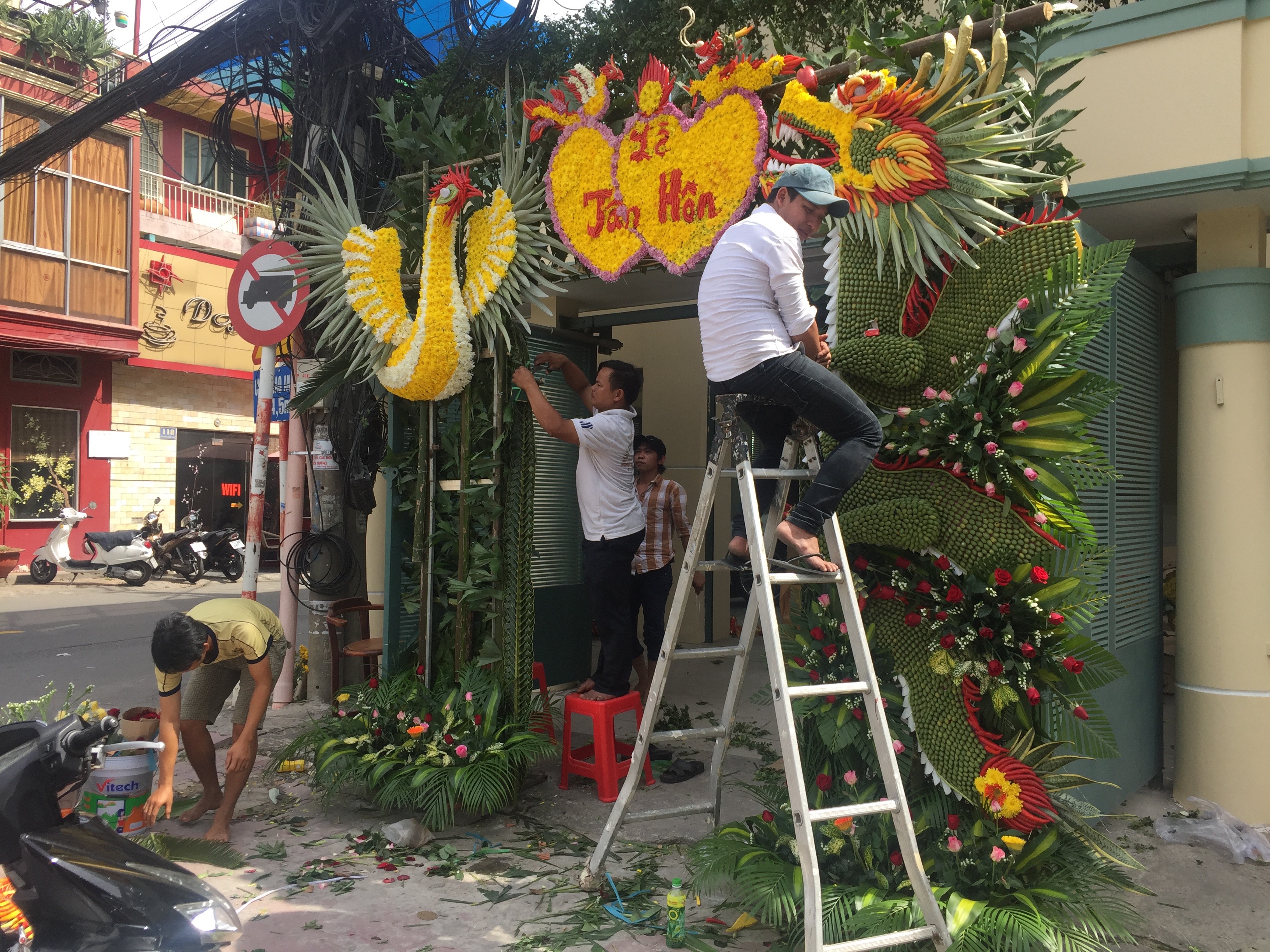 Trong những ngày đầu năm, một gia đình ở quận Bình Thạnh quyết định tổ chức lễ cưới ngay tại tư gia. Đám cưới sẽ bình thường như bao đám cưới khác nếu như gia chủ không thực hiện chiếc cổng cưới thủ công đậm chất Nam Bộ.