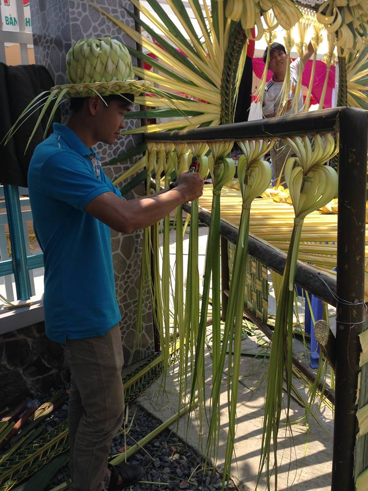 Lá dừa non sắc màu tươi sáng được dùng để kết hoa