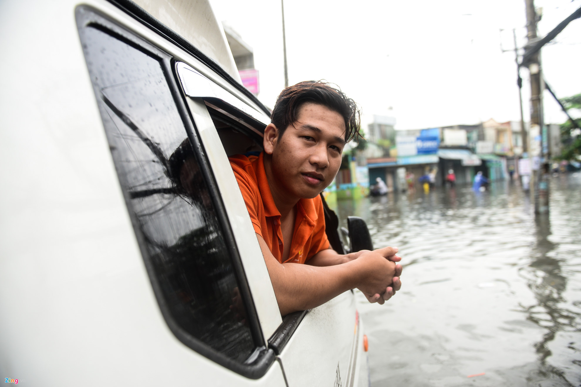 | Anh Ngô Khánh Linh cho biết anh đang đi giao hàng ở quận Bình Thạnh, 6h là phải tới nơi nhưng đến 7h xe vẫn đứng im giữa đường ngập nước do chết máy. |