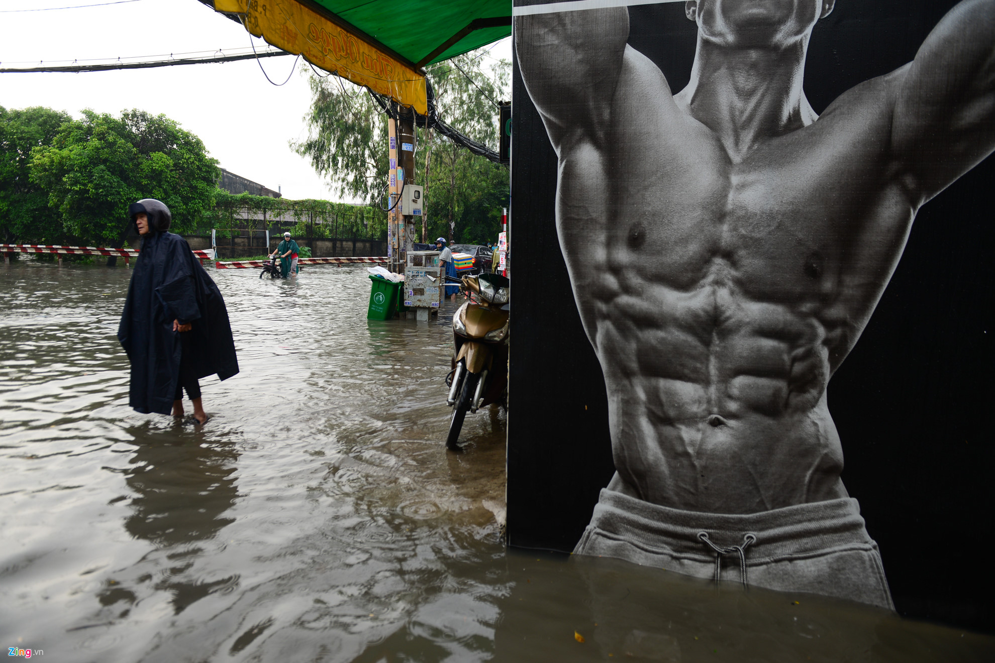 | Một buổi sáng vất vả của anh Nguyễn Văn Tuấn khi xe chết máy giữa đường ngập An Dương Vương. Anh gọi điện báo cơ quan xin đến muộn. Anh cũng lo lắng đồ ướt hết không biết bao giờ khô để thuận tiện làm việc. |
