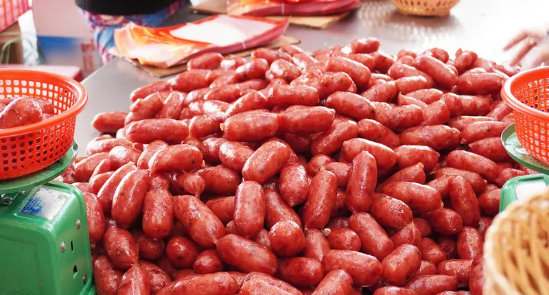 Thành phần: Thịt heo, mỡ heo, đường, tỏi, tiêu, muối, mai quế lộ, ...