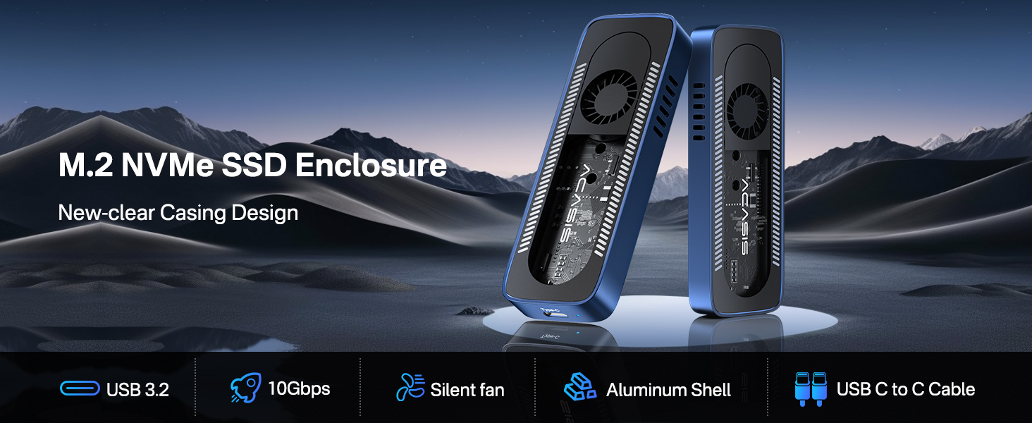 Acasis 10Gbps Tích hợp Quạt USB 3.1 M.2 2230 / 42 / 60 / 80 NVME Vỏ SSD