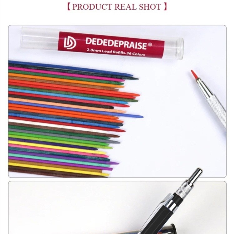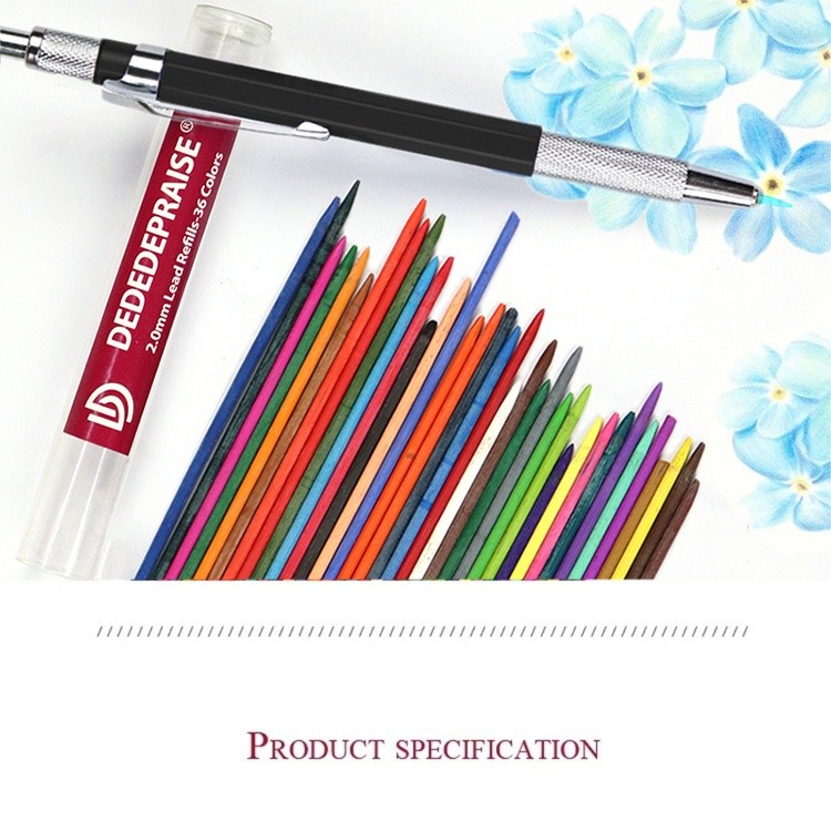 Dedepraie Press Bút chì cơ 2.0MM & Chì 36 màu Vẽ phác thảo Bút chì màu Thay thế Chì bút chì tự động