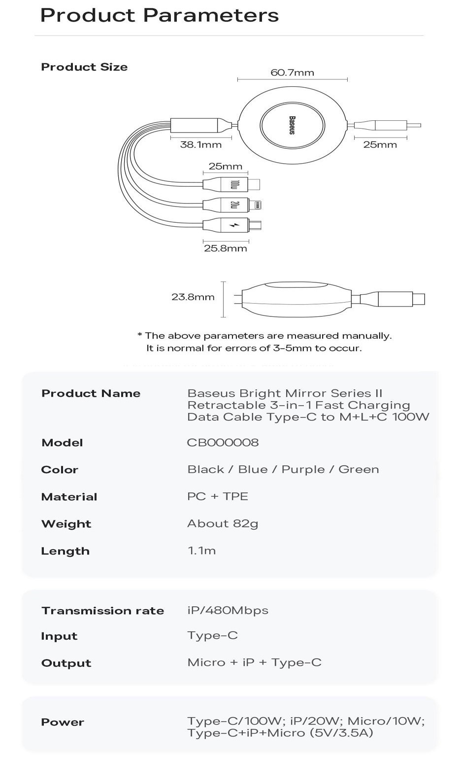 • Cáp được thiết kế rời nhau giúp cho bạn có thể sạc 3 thiết bị cùng lúc