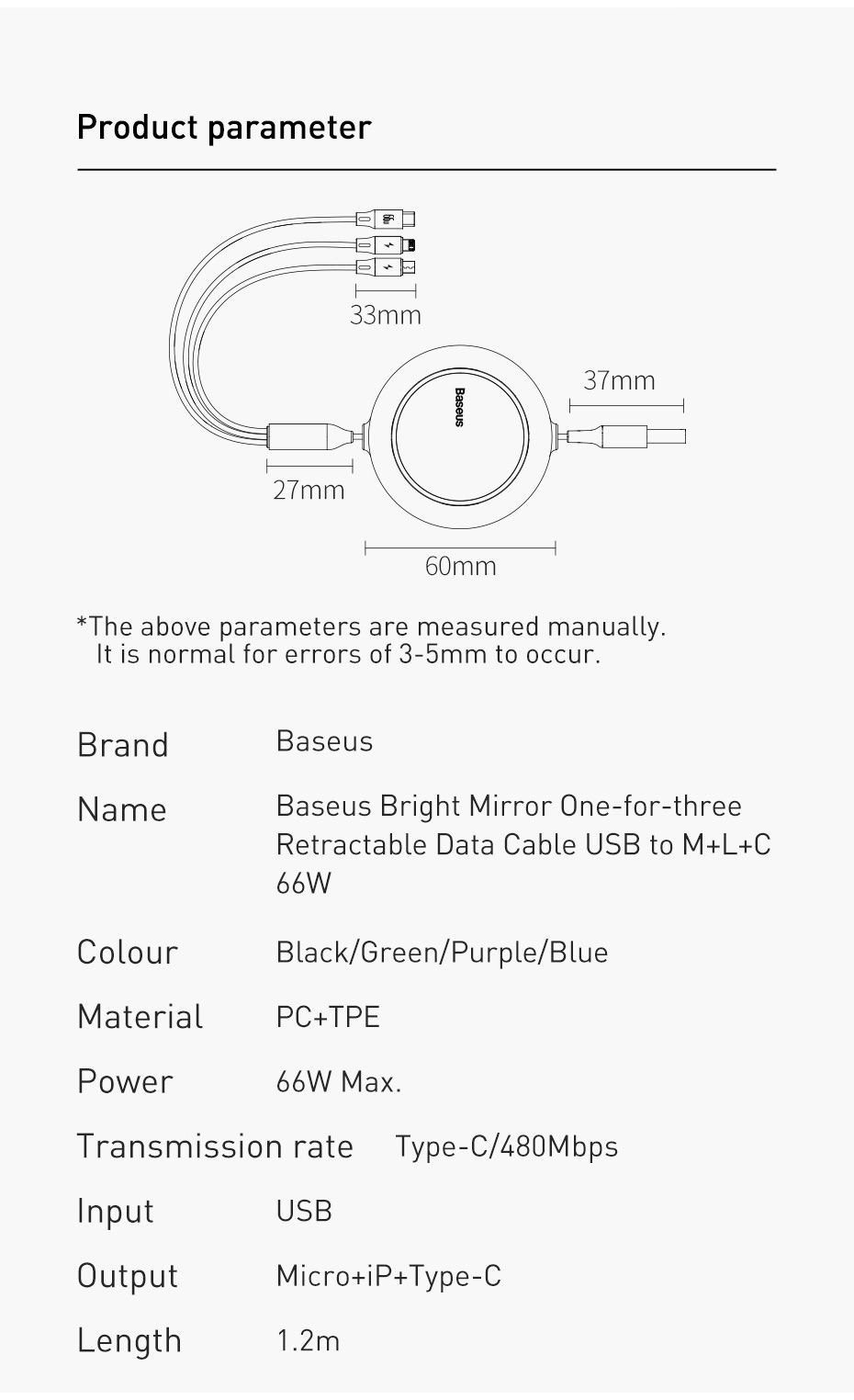 - Cáp 66w nguồn USB, truyền data cổng TypeC, dài 1.2m