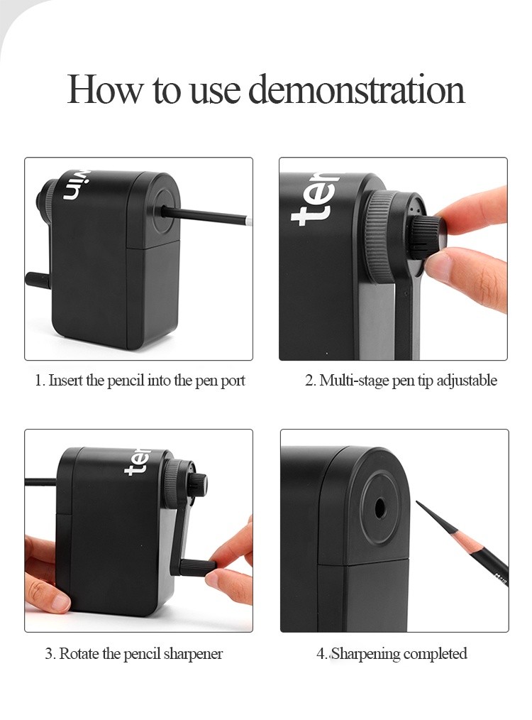 Tenwin Phác thảo Tay quay / Máy mài bút chì quay Trường học Máy mài cơ học Nguồn cung cấp dao Hướng dẫn sử dụng Bút chì / Máy cắt than 8029 Lõi chì tinh tế và mịn màng | Không chì chiên, không gờ
