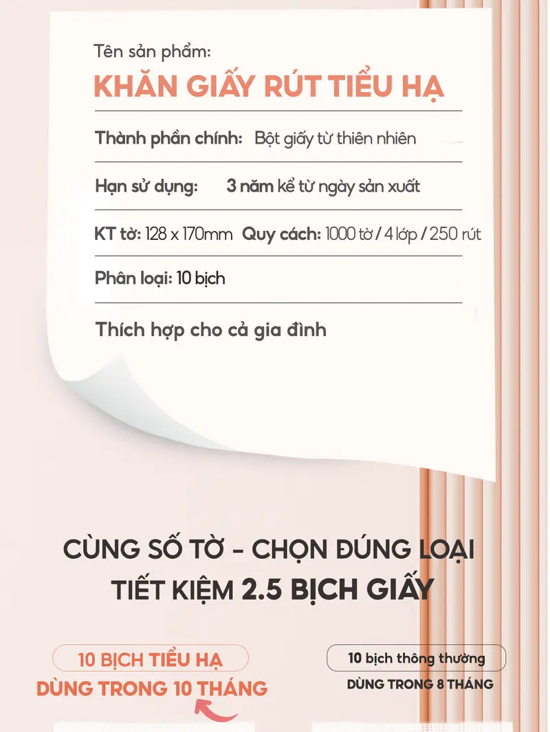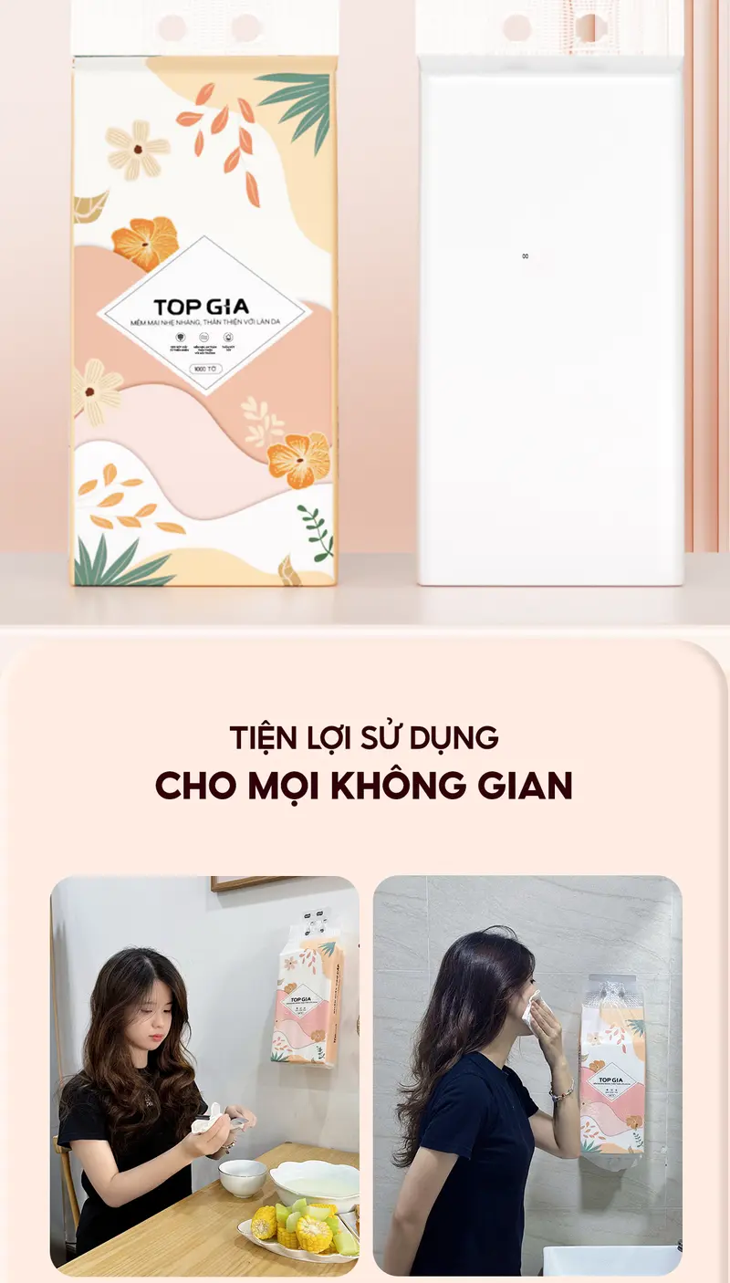 - Thiết kế tiện lợi: Gói giấy dễ dàng lấy từng tờ một, giúp tiết kiệm và tránh lãng phí.