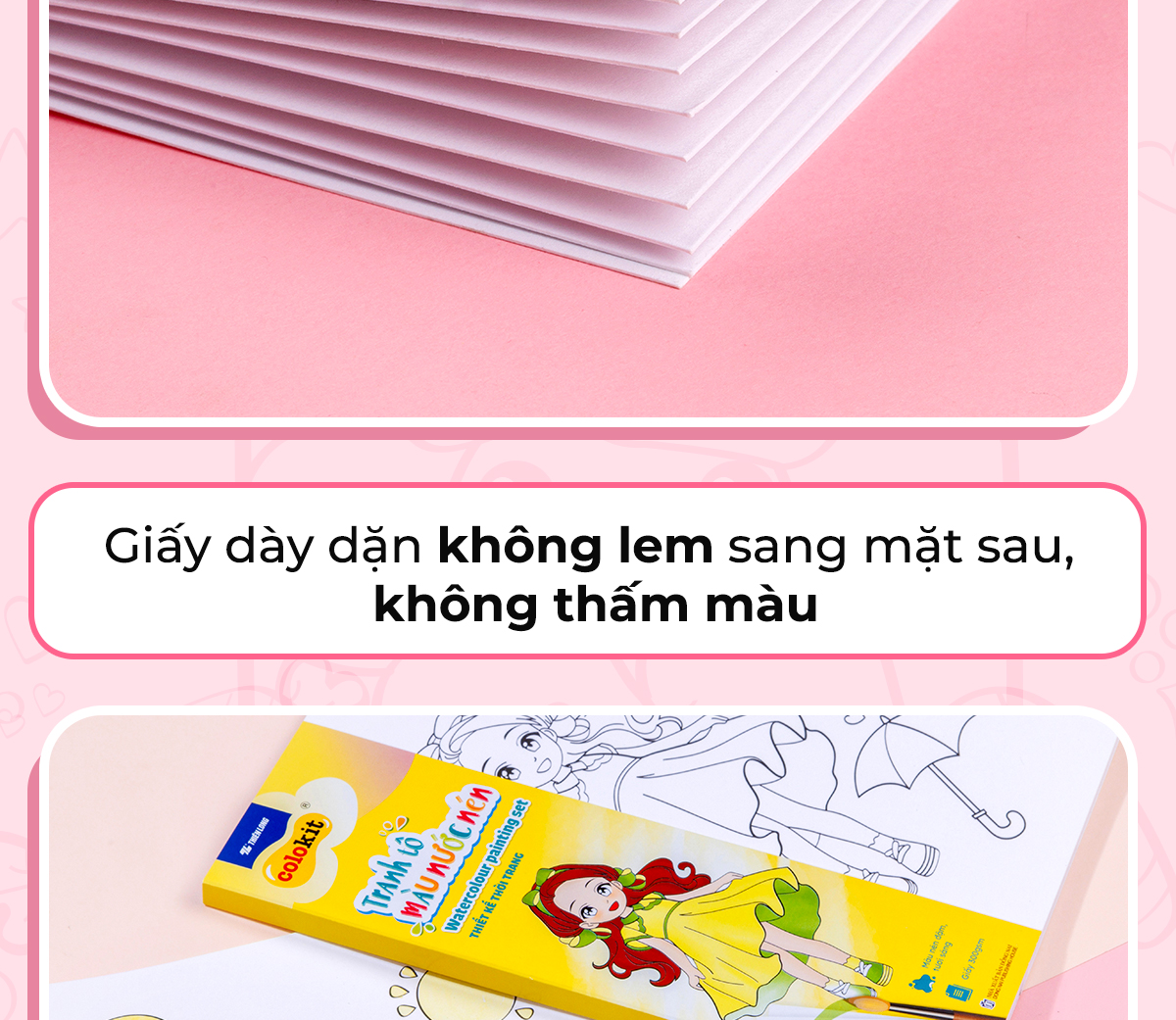 ▪️ Sử dụng loại giấy mỹ thuật định lượng 300 gsm dày dặn, không lem mặt sau.
